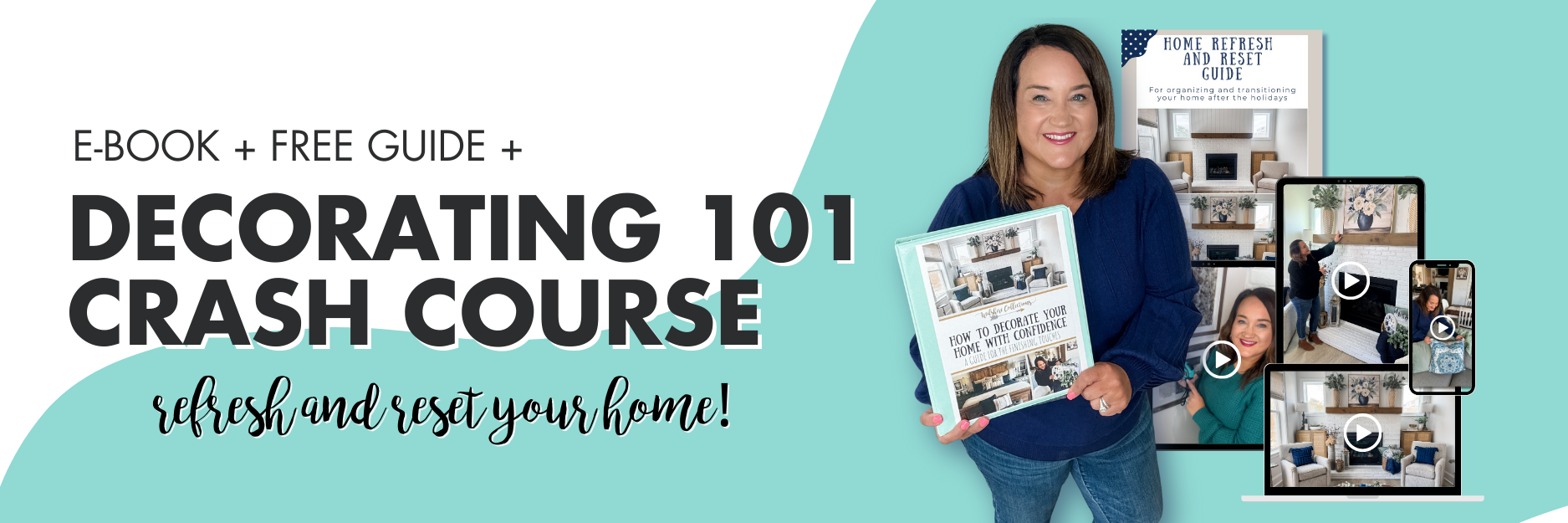 Get instant access to 3 videos where I’ll teach you some of my best decorating tips and tricks! Plus, get my How To Decorate Your Home with Confidence E-Book + my FREE Home Refresh & Reset Guide too! All for only $15!